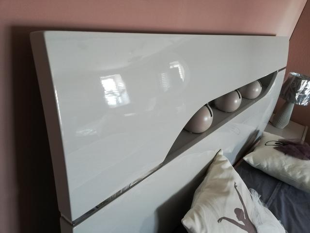 Спальня "Торонто" має глянсове покриття в сірих тонах "сірий глянець". Матеріал — МДФ. Висувні елементи укомплектовані напрямними плавного відкриття. ліжко укомплектоване декоративною підсвіткою, вмонтованою вголов'я.